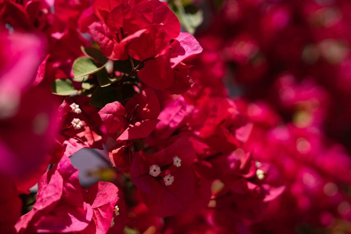 I took this photo in Sintra, walking along the coast. The flowers were growing on a vine that climbed up the white plaster wall of a staircase. I tilted the horizon to point the vines straight up through the frame and play with the long shadows they cast against the plaster.